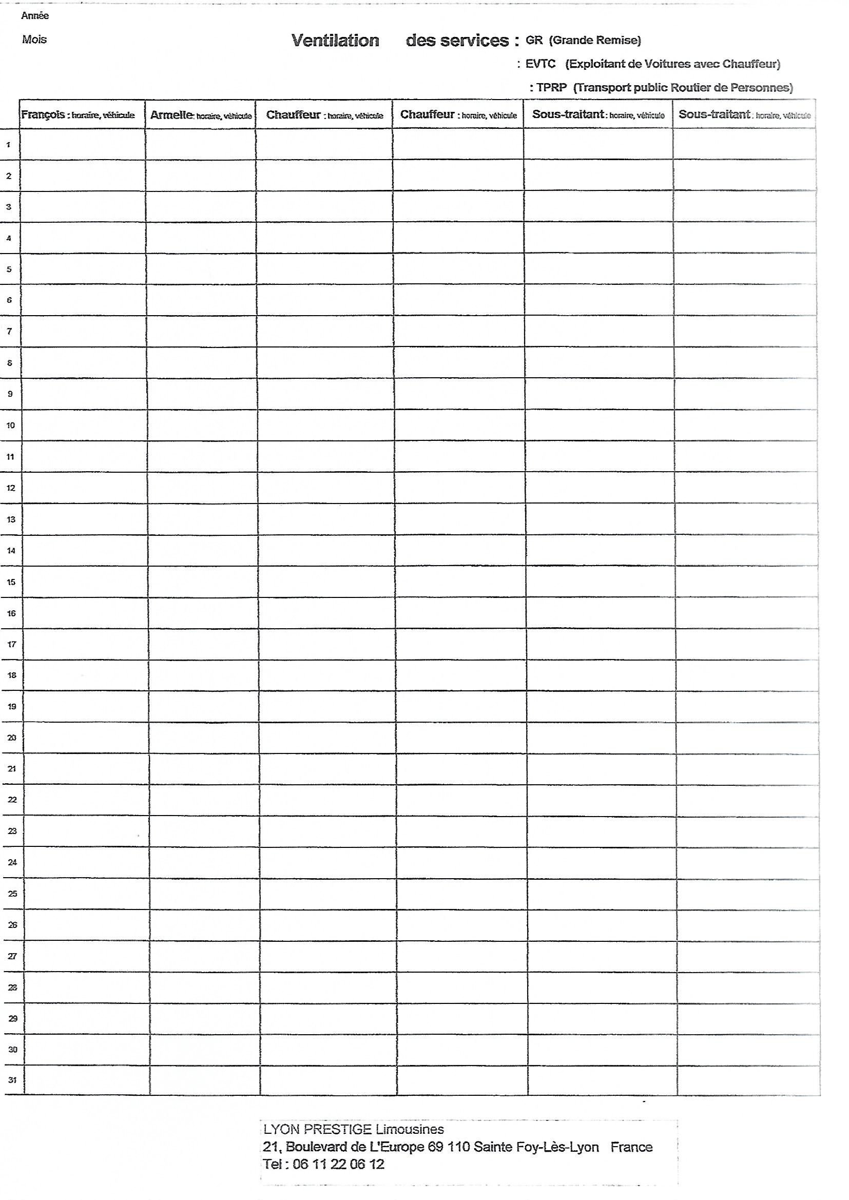 > Vous devez pouvoir JUSTIFIER: Quelle voiture ? Quel chauffeur ? Quel sous-traitant ? a effectué tel service…(exemple de tableau récapitulatif).