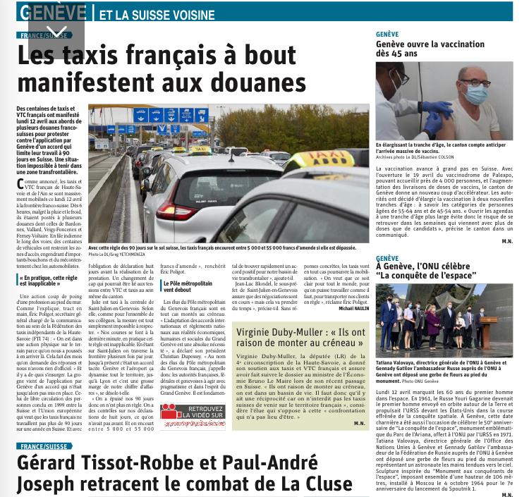 Manifestation du 12 avril 2021 des taxis et VTC aux douanes entre la Haute-Savoie et la Suisse