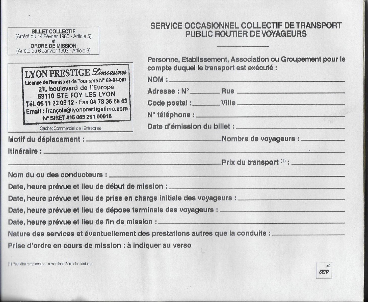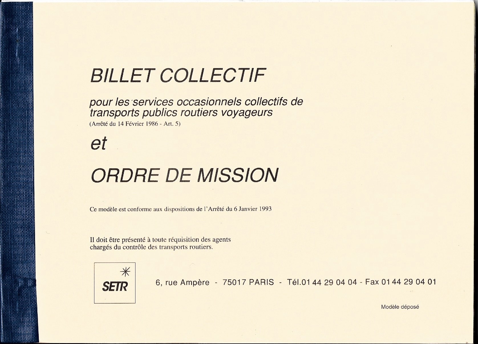 Billet collectif, ordre de mission ou bon de commande